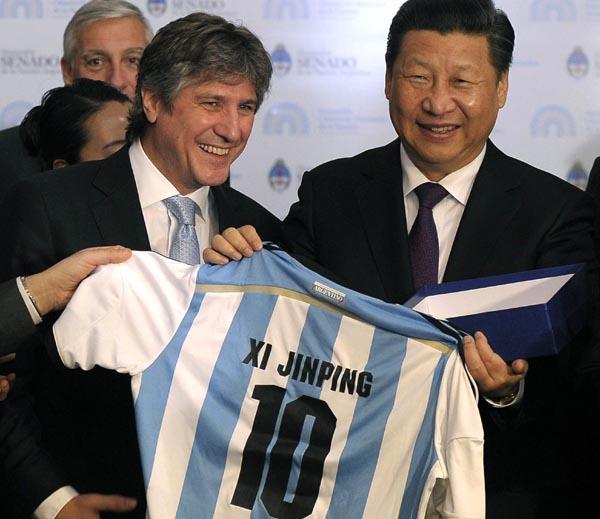| 阿根廷副總統兼參議長佈杜在會見後,向習近平贈送瞭印有習近平名字的阿根廷國傢足球隊10號球衣,隨後習近平也向阿根廷朋友贈送瞭國禮。 曾創造國產電影票房奇跡的《泰囧》的故事主要發生在泰國小城清邁,就被赴泰國出訪的李克強公開點贊。 王岐山就曾多次向紀檢幹部們提到瞭美國政治劇《紙牌屋》 中國國傢主席習近平正在進行拉美之行。 當地時間7月19日,阿根廷副總統兼參議長佈杜在會見後,向習近平贈送瞭印有習近平名字的阿根廷國傢足球隊10號球衣,隨後習近平也向阿根廷朋友贈送瞭國禮。 據北京青年報報道,在此次習近平拉美之行的國禮名單之中有一套DVD光盤,光盤中包括瞭趙寶剛執導的兩部作品《北京青年》、《老有所依》和滕華濤執導的《失戀33天》等。 滕華濤接受北青報記者采訪時表示事先並不知道作品入選,昨天早晨看到新聞後很開心, 特意致電影片投資方詢問此次入選“國禮”的標準,“聽說要片子的時候,是想帶反映當代中國題材、反映當下年輕人生活面貌的作品”。 事實上,在百忙之餘,中央領導人看看電影、電視劇是常有的事情。不僅自己看,碰到自己喜歡的作品,他們也會向其他人甚至向外國朋友推薦。 影視劇外交 近年來,“影視劇外交”大熱。如果某些影視劇劇情剛好涉及出訪國,該劇很大可能會成為中央領導人出訪時用來與對方拉近距離、增進彼此感情的利器。 《媳婦的美好時代》是一部國內都市情感題材電視劇。該劇描寫瞭傢長裡短的傢庭故事,探討瞭當代都市傢庭的婆媳關系,以及擁有新式婚戀觀的“80後”適婚年輕人的婚姻故事。 數年前,該劇曾熱播,2013年初則被中共中央總書記習近平公開點贊。 2013年3月份,習近平在坦桑尼亞首都發表演講時特意提及,中國電視劇《媳婦的美好時代》在坦桑尼亞熱播。他指出,這使坦桑尼亞觀眾瞭解到中國老百姓傢庭生活的酸甜苦辣。他以此佐證中非人民講一個“親”字,中國人民與非洲人民有著天然的親近感。 國務院總理李克強也曾點贊過影視劇。曾創造國產電影票房奇跡的《泰囧》的故事主要發生在泰國小城清邁,就被赴泰國出訪的李克強公開點贊。 2013年10月份,李克強到泰國訪問。他在泰國國會就中泰關系發表演講時說到,兩國民間更是像走親戚一樣你來我往,泰國是最受中國遊客歡迎的出境目的地。 李克強說,中國藝術傢拍攝一部電影《泰囧》,創造中國國產片最高票房記錄,吸引瞭更多中國遊客赴泰國旅遊。 顯然,《泰囧》並非李克強點贊過的唯一一部電影。喜劇電影《三傻大鬧寶萊塢》根據印度暢銷書作傢奇坦 巴哈特的處女作小說《五點人》改編而成,是一部少見的印度式校園青春片。2013年5月李克強總理出訪印度時大贊印度人熱情好客,就提到瞭這部影片,並且說這是在女兒的建議下觀看的。 與習近平、李克強一樣,老一輩中央領導人也經常用影視劇來活躍出訪會面氣氛。 據新華網報道,1978年鄧小平訪問日本之後,為瞭加強中日間的文化交流,促進中日友好,中國從日本引進三部電影,分別是《追捕》、《望鄉》和《狐貍的故事》。這三部電影在中國公映後引起瞭很大的轟動。 胡錦濤和溫傢寶出訪日本時均提到《追捕》這部電影。 1998年4月,胡錦濤出訪日本,見到瞭參演《追捕》的日本演員中野良子,並且第一眼就認出瞭她是《追捕》裡的“真由美”。 胡錦濤當時吃驚地“啊”瞭一聲,接著笑瞭起來,說自己看過這部電影,現在看到女主角從大銀幕上走下來,感覺很不一樣。 2010年5月,溫傢寶訪問日本,中野良子又出現在由溫傢寶主持的中日文化界知名人士座談會上。 雖然此時據電影《追捕》在中國上映已過去20年,且座談會當天,中野良子穿著和服,梳著高高的發髻,竟然也被溫傢寶認出。溫傢寶在座談會結束前,特意點名讓她發言,“你也發個言吧。我最早是從《追捕》中認識你的。” 除瞭《追捕》,溫傢寶還提到他在時任日本首相鳩山由紀夫推薦下觀看獲得奧斯卡最佳外語片獎的日本電影《入殮師》。溫傢寶表示自己從頭到尾看完這部電影,“電影講的是生死離別的故事,體現的是倫理道德,有著東方文化的底蘊。我很喜歡。” 被點贊的美國大片 在中央領導人點贊的外國影視劇中,美國大片自然是繞不過去的。 2013年2月份,習近平出訪美國時,再次來到他27年前曾住過的艾奧瓦州小鎮馬斯卡廷,與當年的房東德沃切克夫婦交談。 他回憶到,當時房東夫婦有個可愛的女兒,會好奇地向他問一些問題,比如有沒有看過美國電影。當時習近平回答說自己看過《獵鹿人》、《上尉的女兒》、《教父》。這讓房東女兒非常詫異,沒想到一個中國人看過這麼多美國電影。 其實,除瞭上述電影外,《碟中諜》《拯救大兵瑞恩》這些好萊塢大片也頗受習近平青睞。 1997年12月美國大片《泰坦尼克號》在美國上映,一度引發萬人空巷。 1998年春天,時任國傢主席江澤民參加瞭一次特殊的放映活動,觀看瞭這部轟動一時的電影,並給與高度評價。 “你們絕不要以為資本主義國傢就沒思想教育。”他對一些人大代表說,“《泰坦尼克號》講到瞭財富與愛情、富人與窮人的關系,生動地表現瞭人們在面對災難時的反應。” 此番評論不久,這部配有中文字幕的奧斯卡獲獎影片,就在中南海的大屏幕上為高級官員放映瞭。 稍晚之後的1998年3月10日,《泰坦尼克號》正式登陸中國